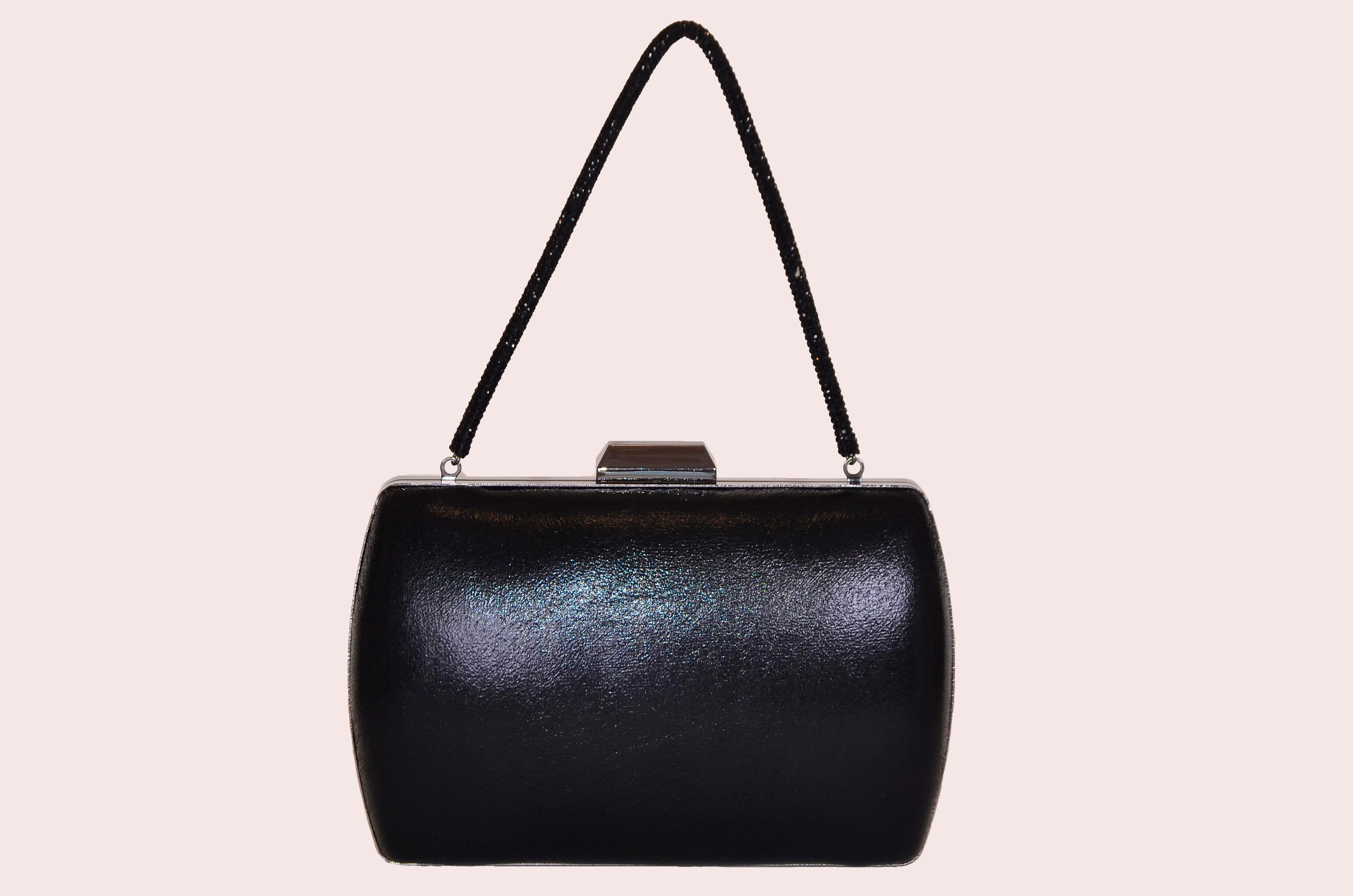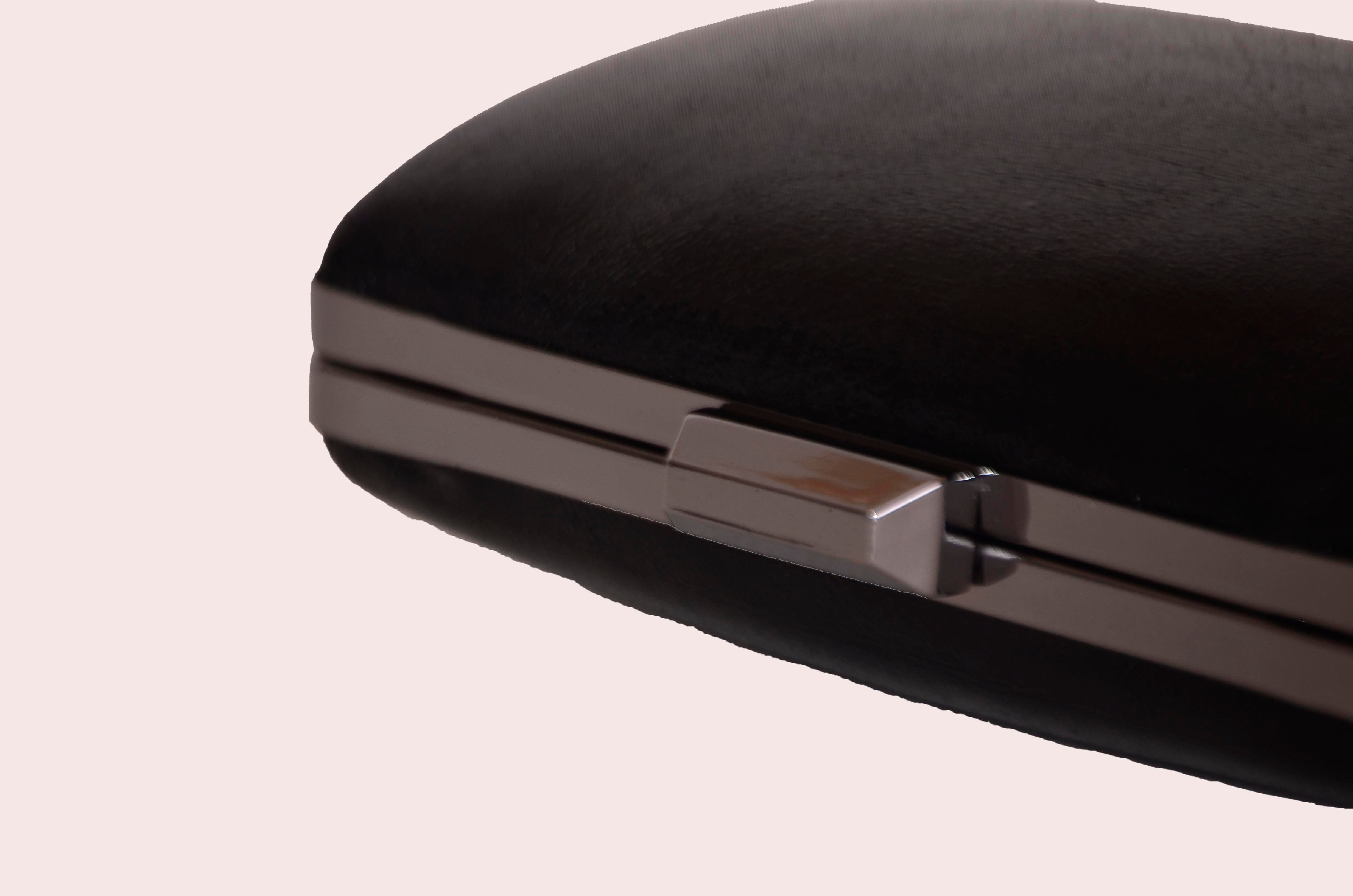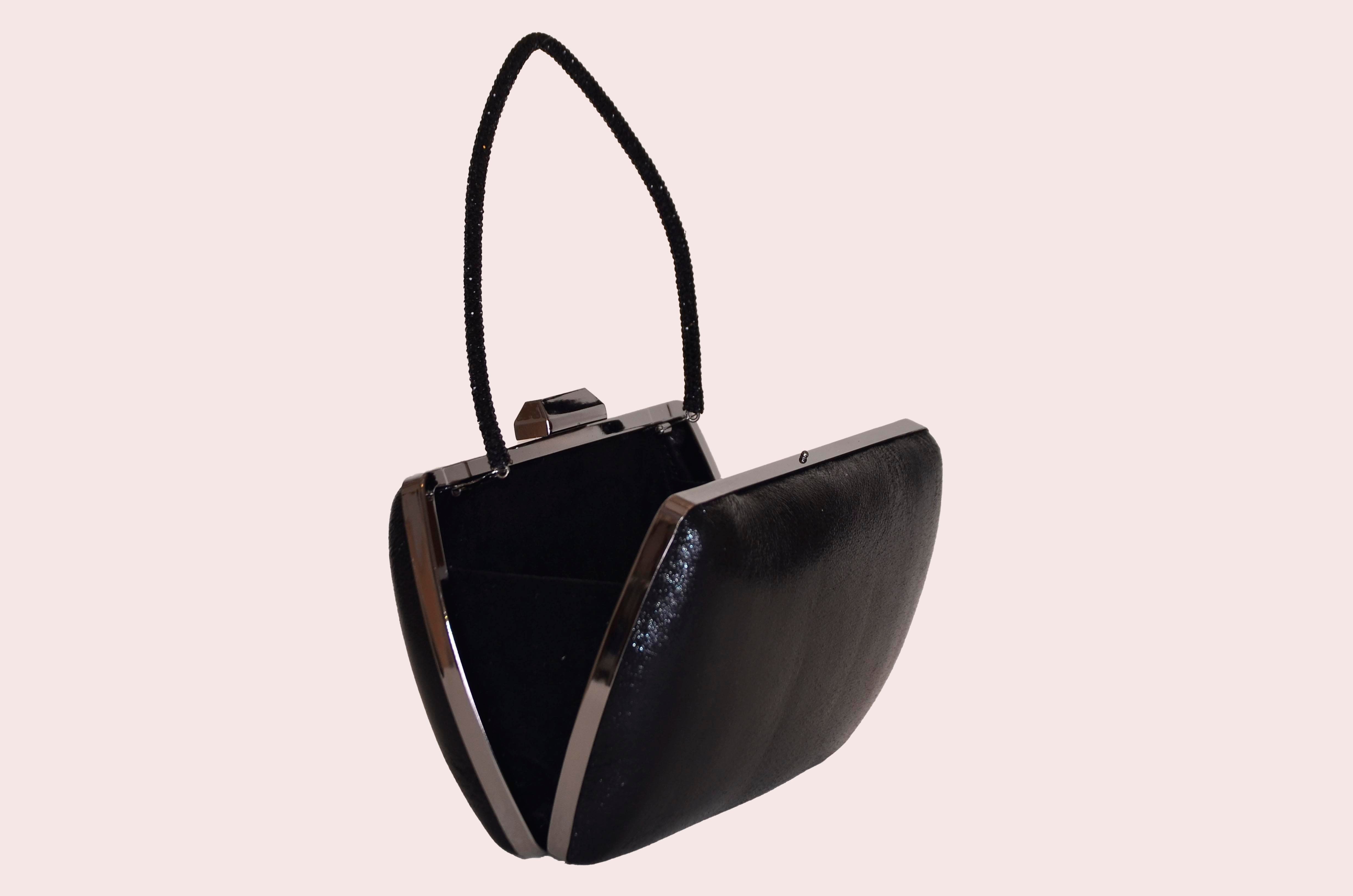 Black Plated Oval Plain Evening Bag with Crystal Stone Handle