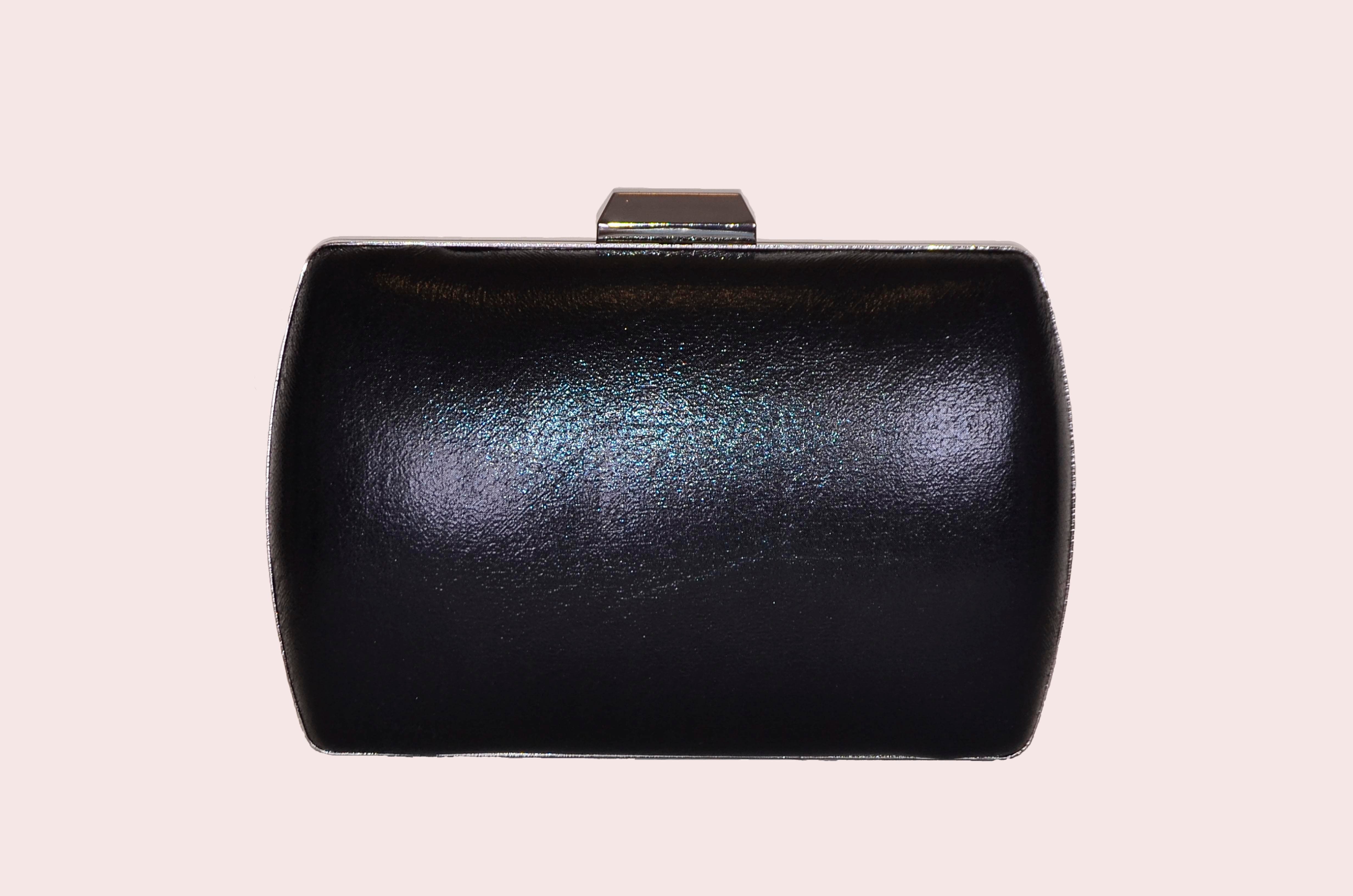 Kristal Taş Saplı Siyah Sıvama Oval Düz Abiye Çanta