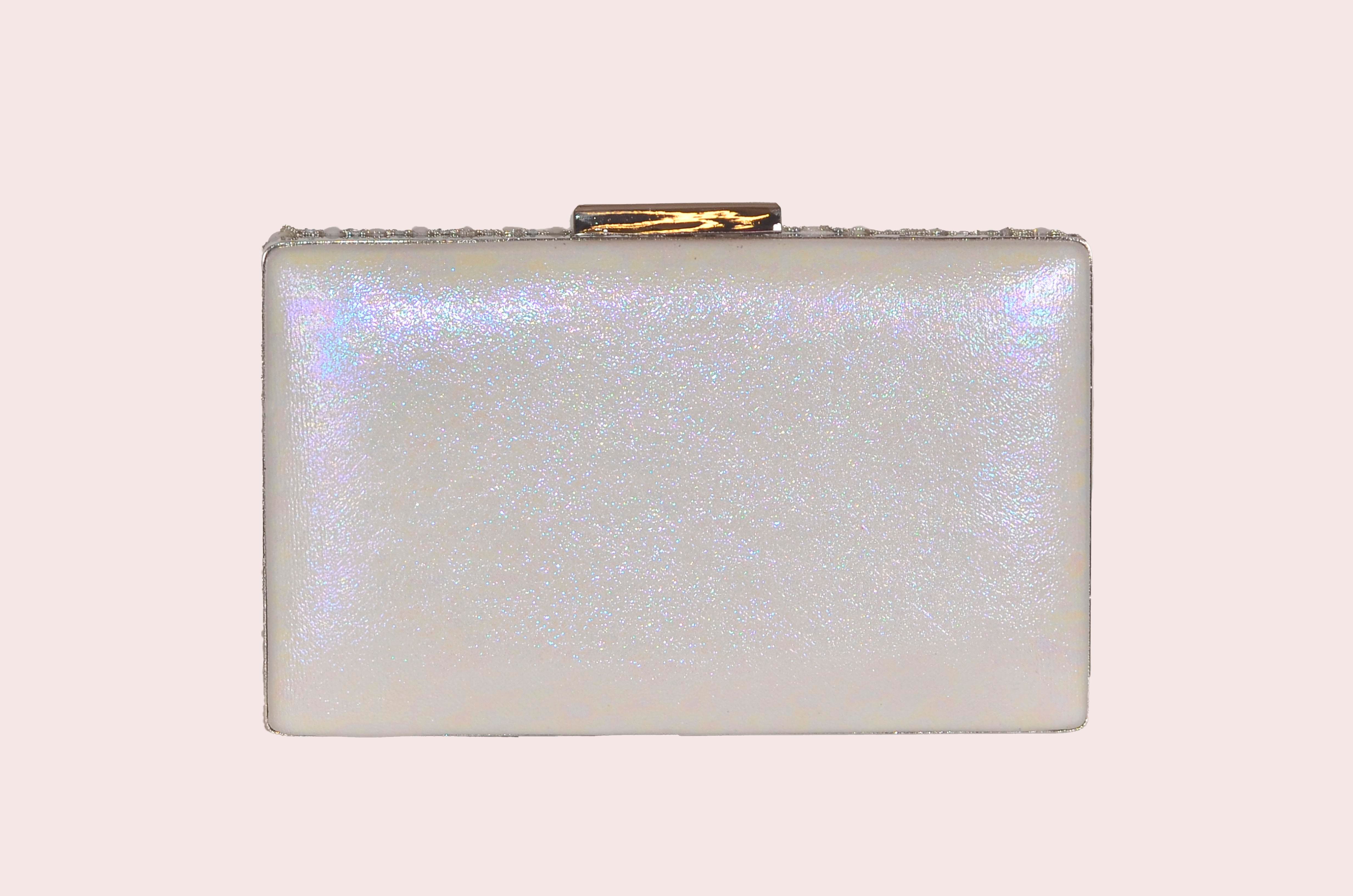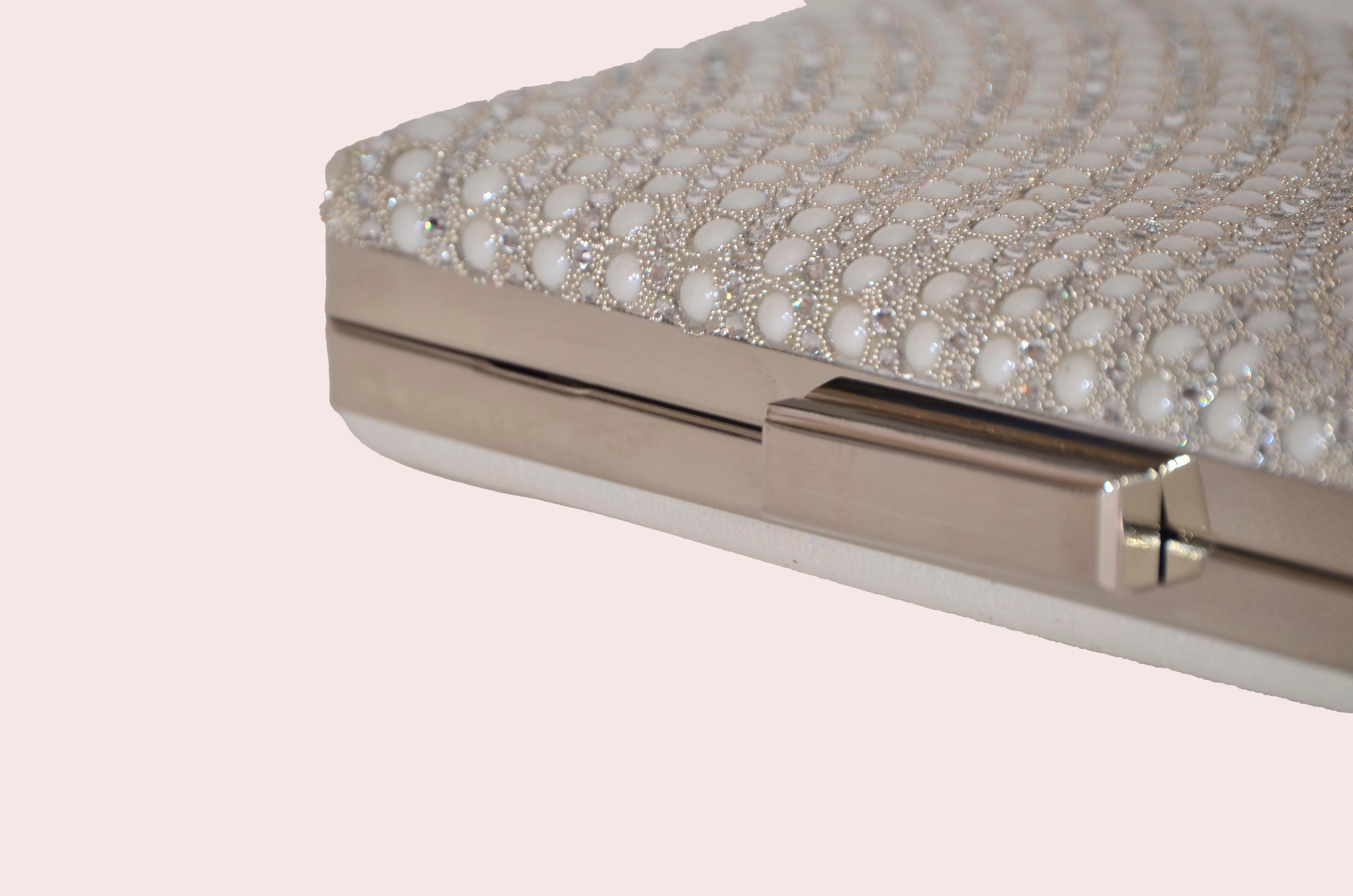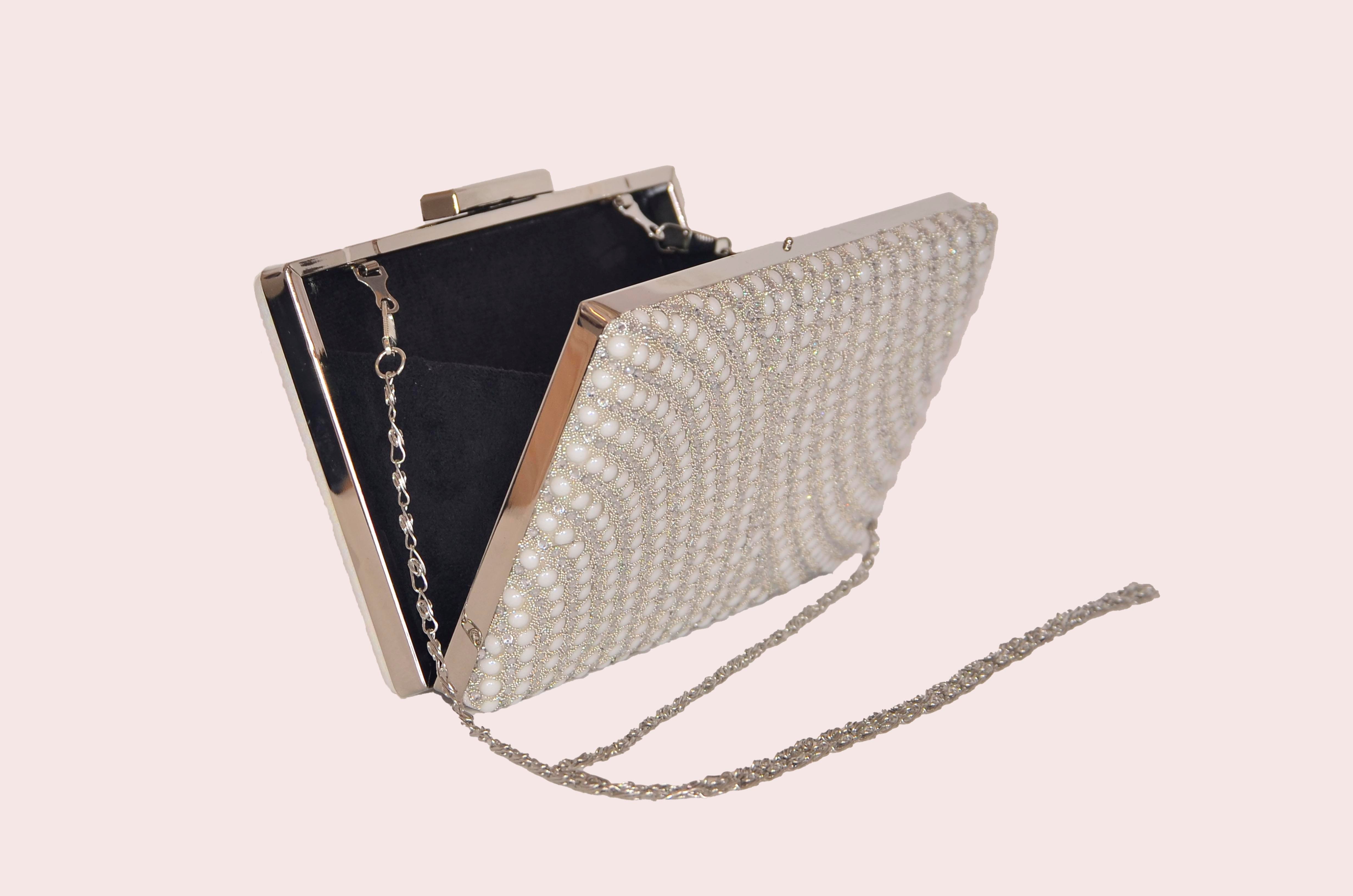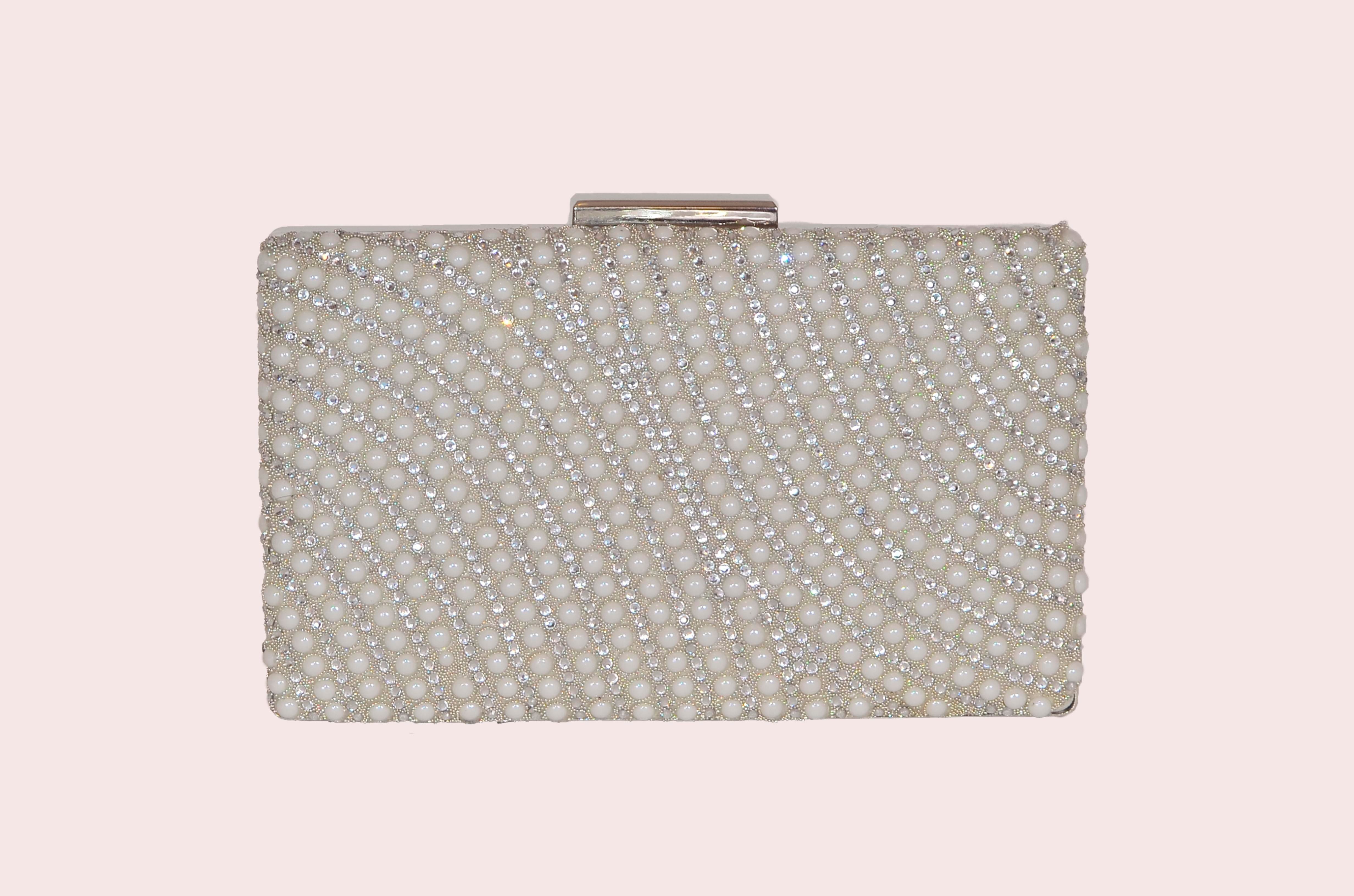 Rectangular Bag with Rows of Pearls and Crystal Stones