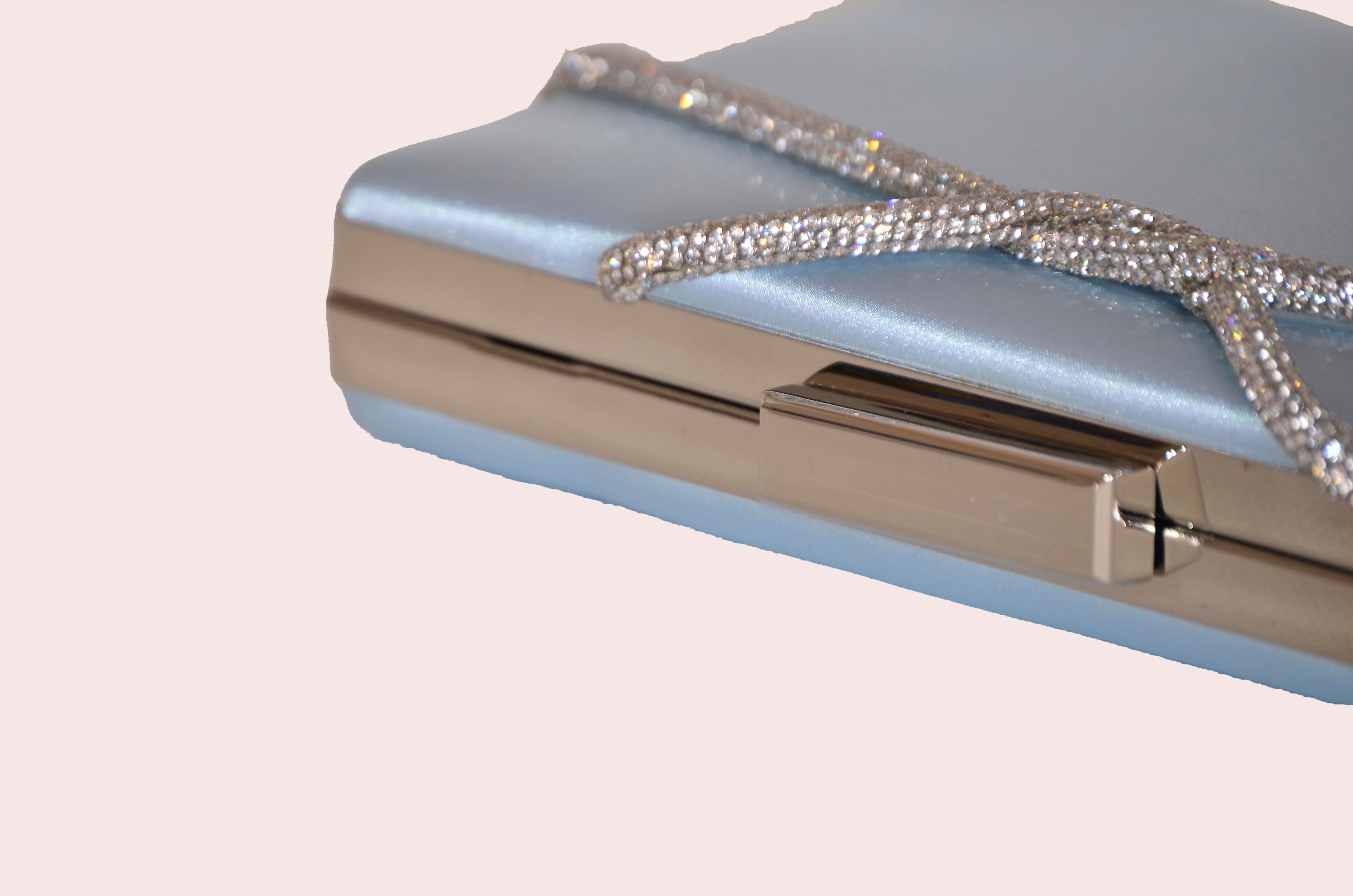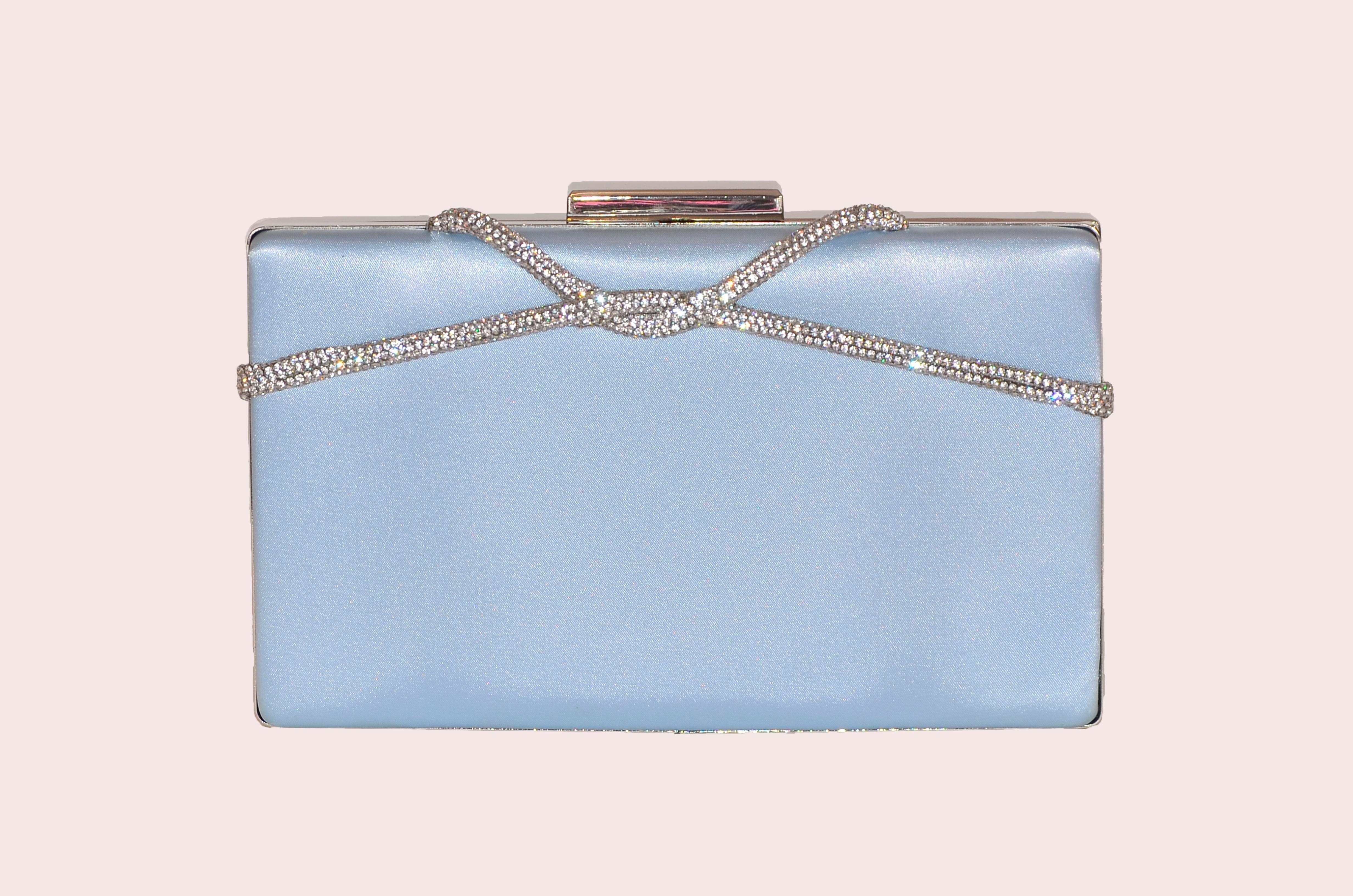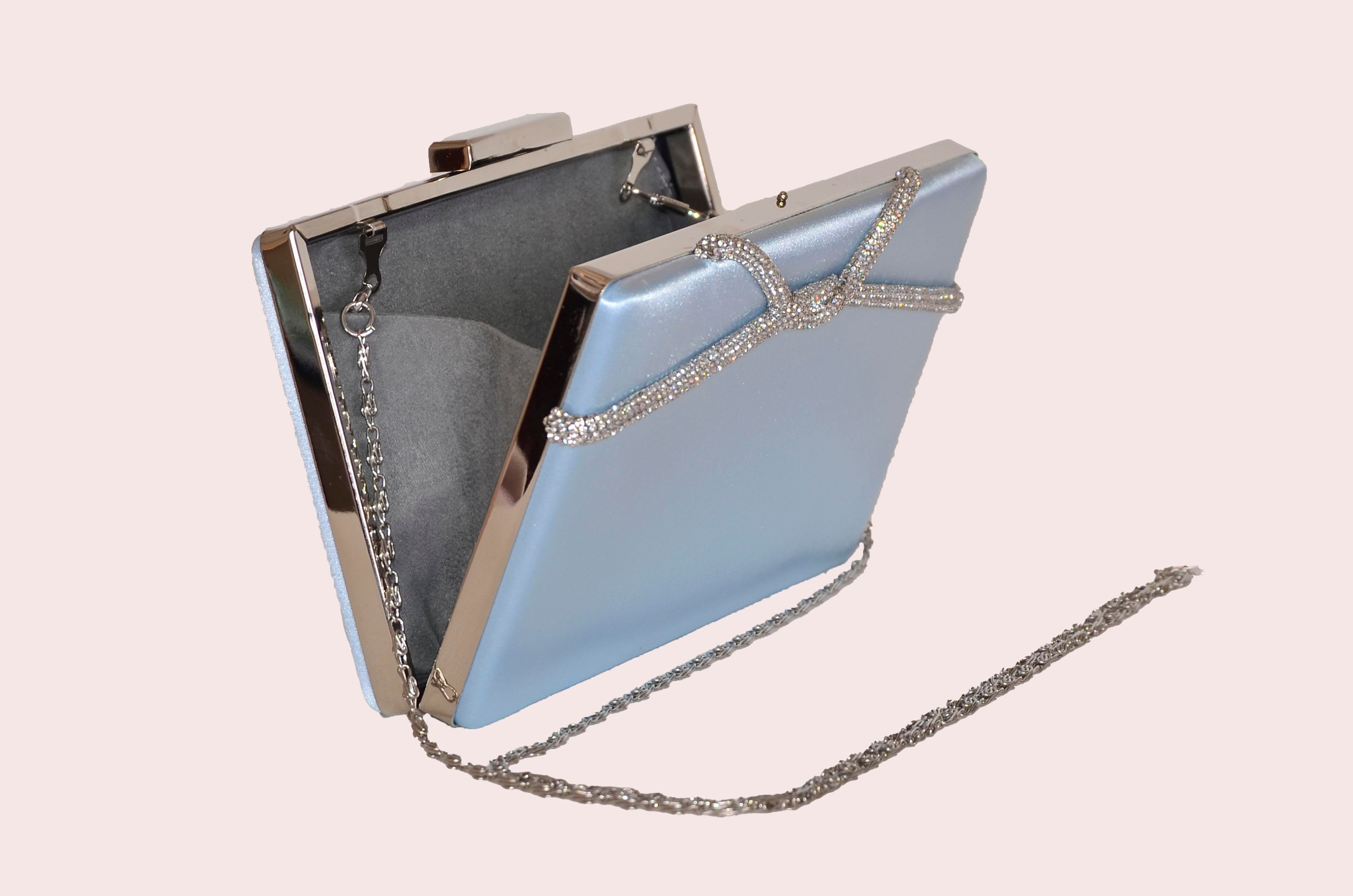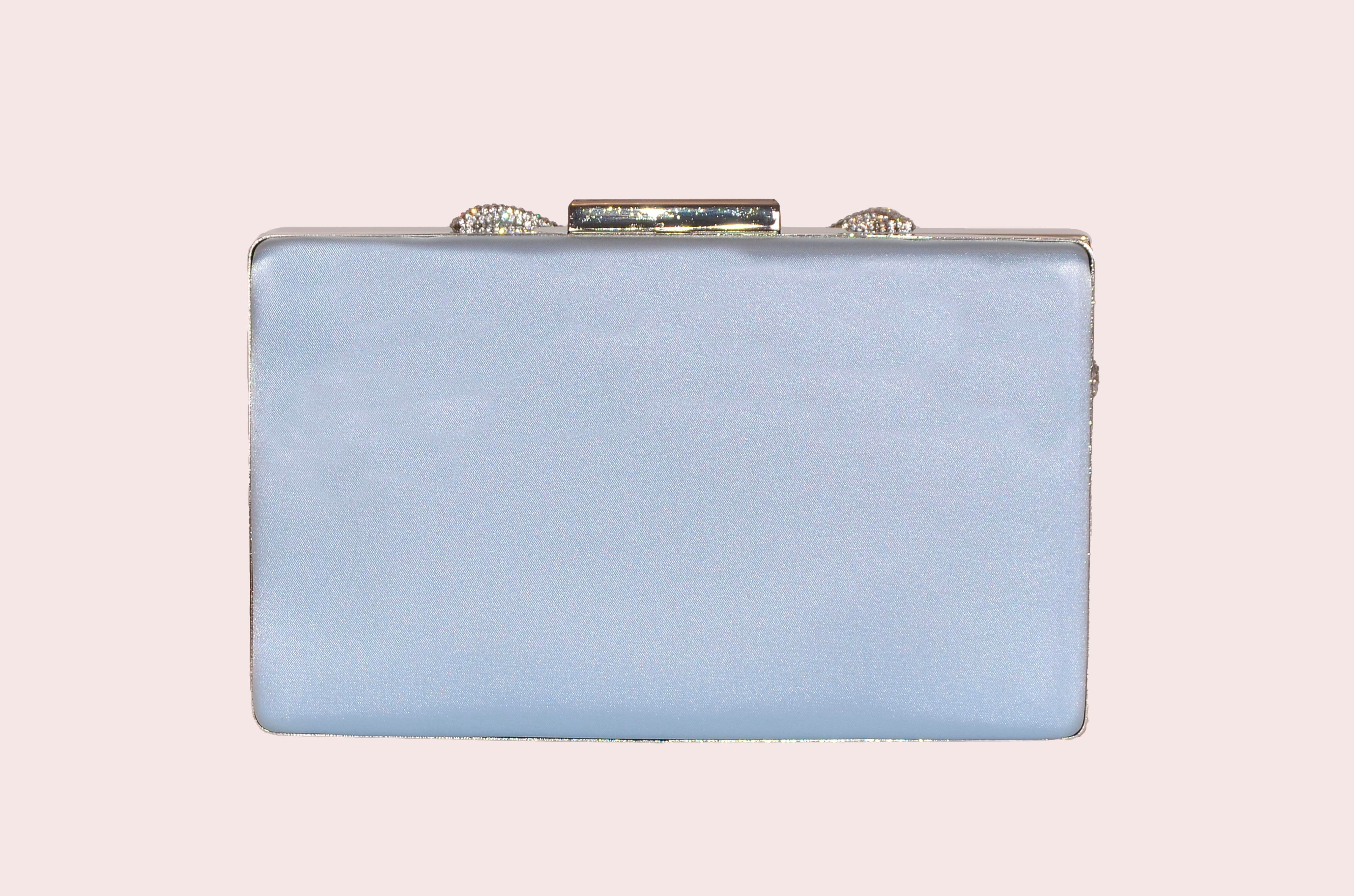 Bebe Mavisi Saten Taşlı Dikdörtgen Abiye Çanta