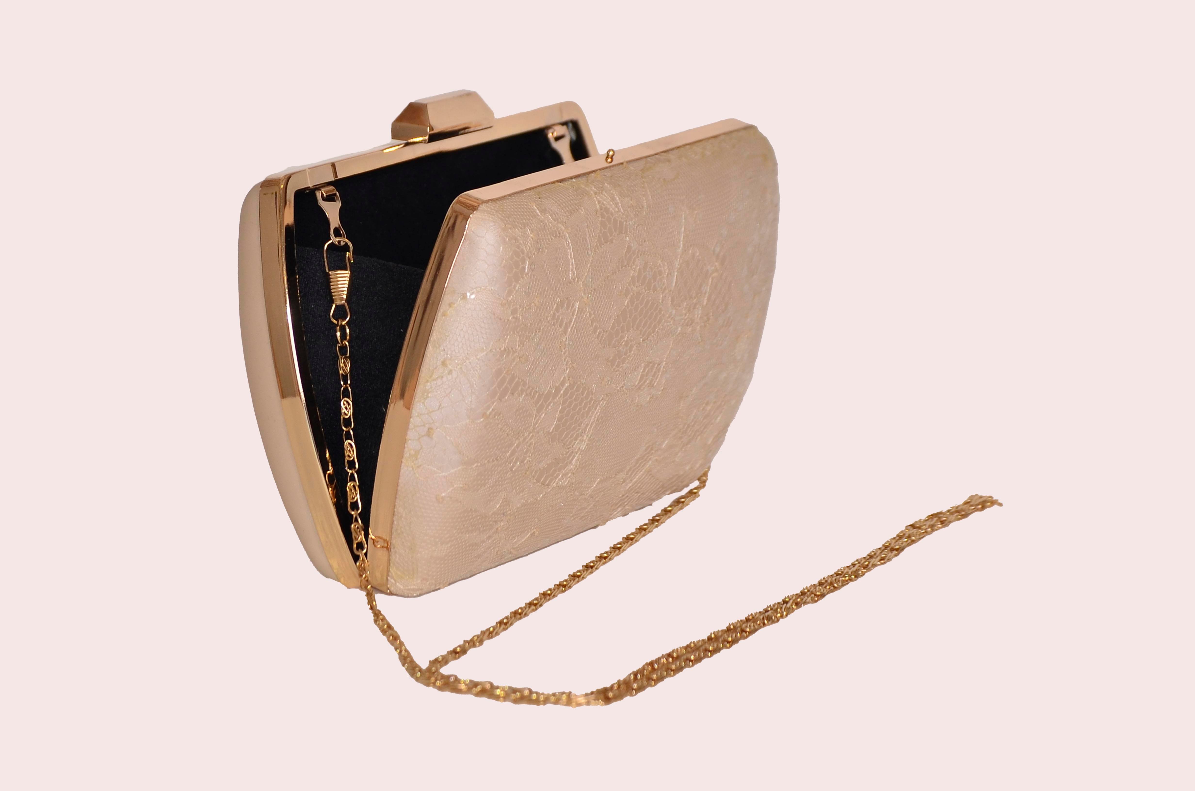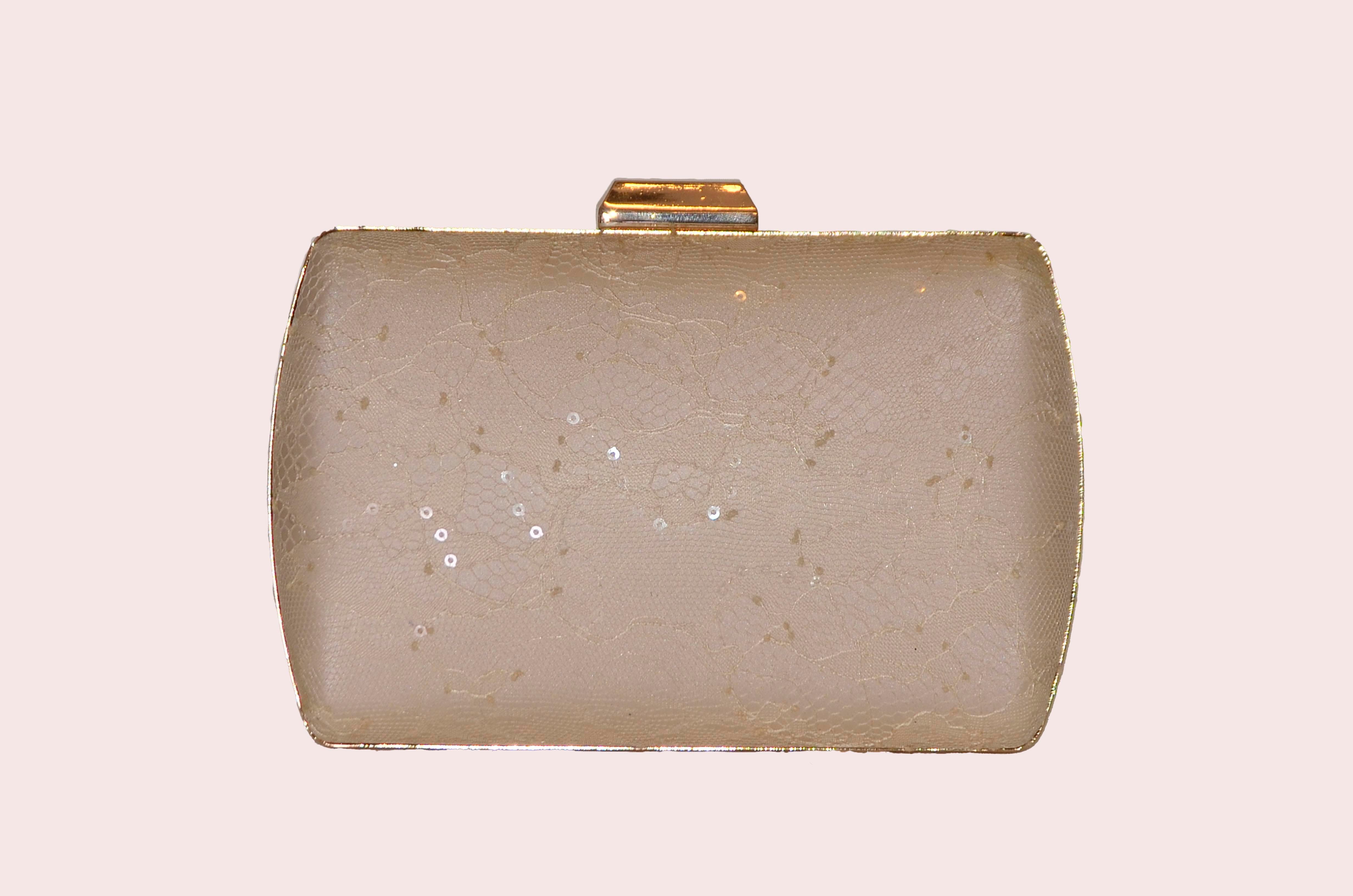 Lace Champagne Oval Evening Bag