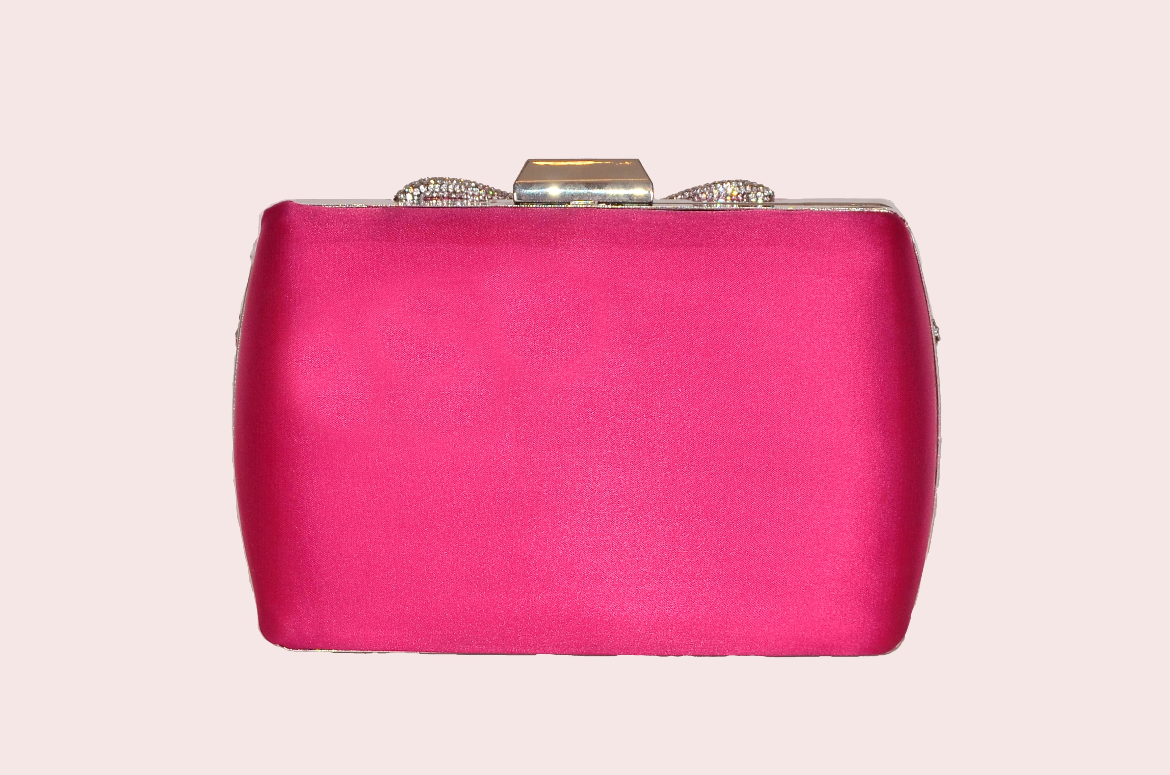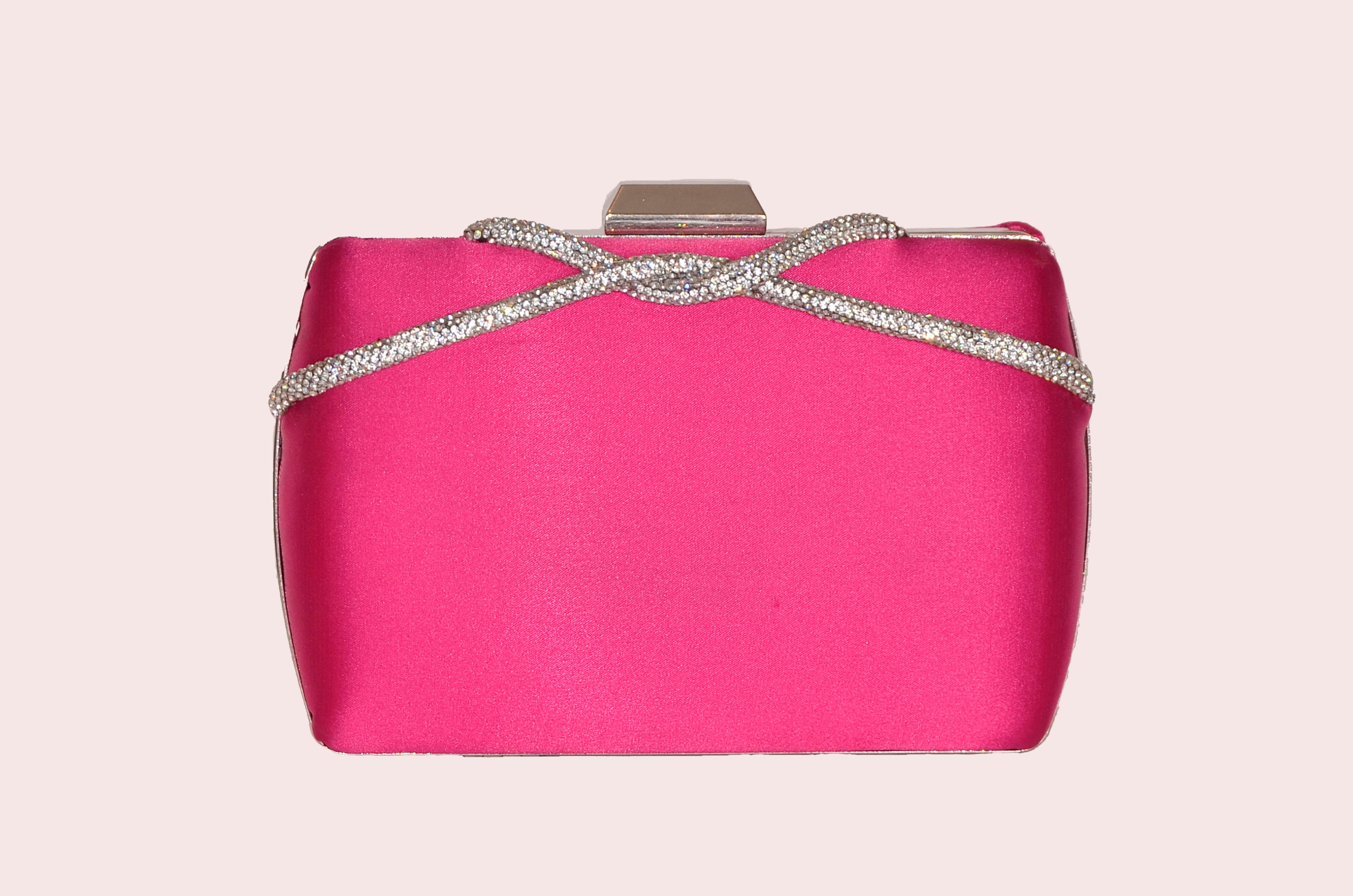Fuchsia Satin Stone Oval Evening Dress Bag