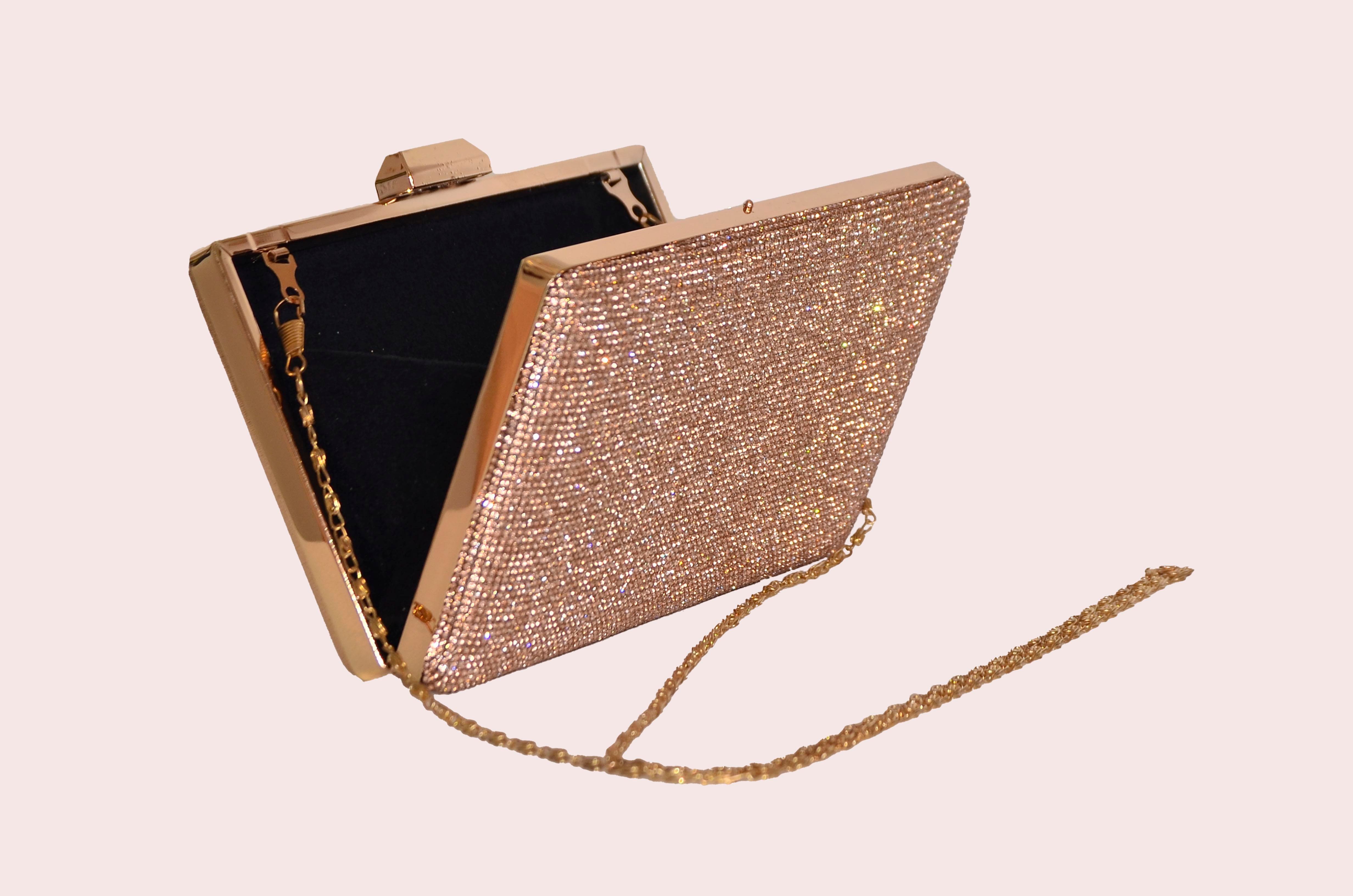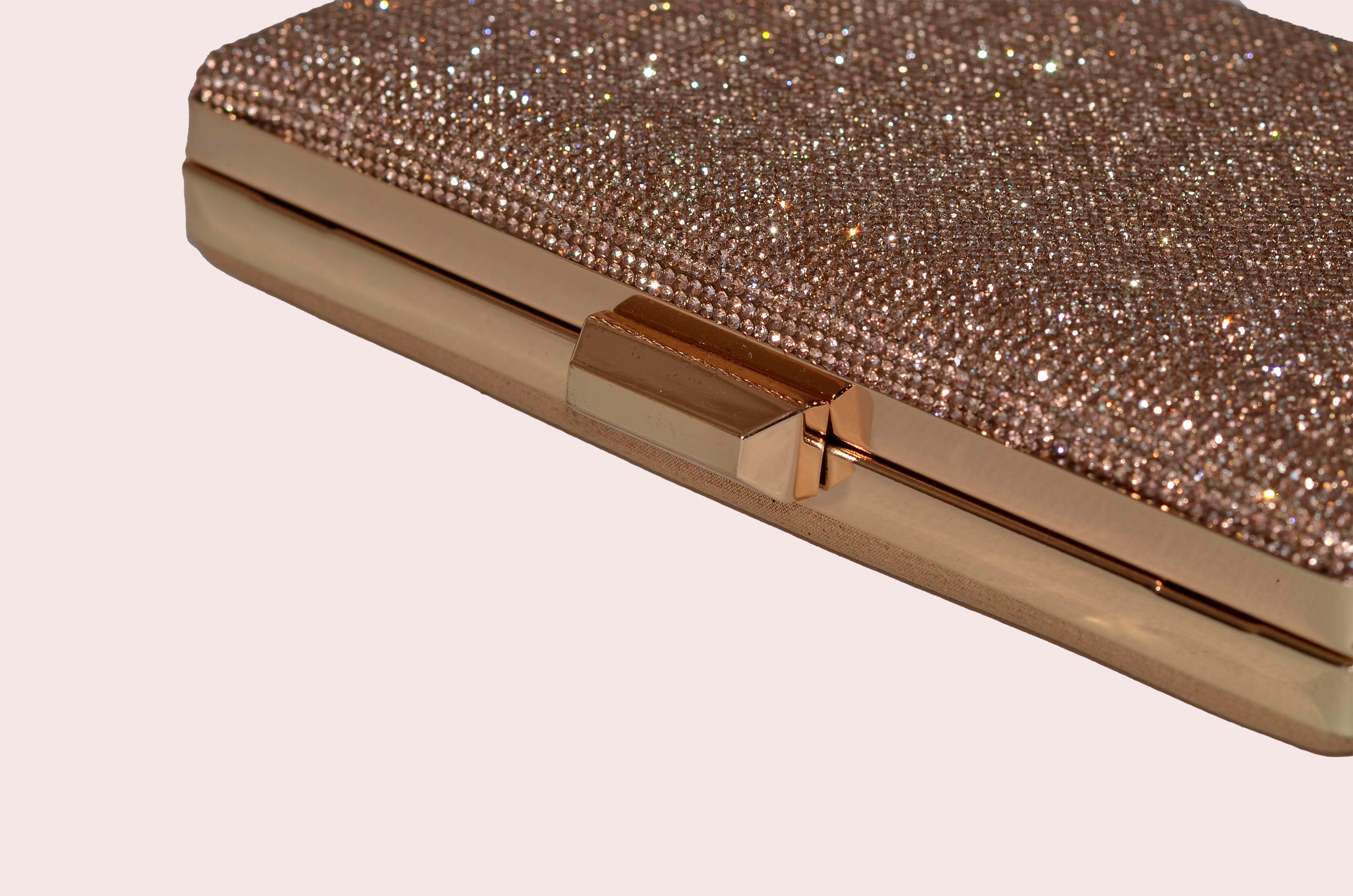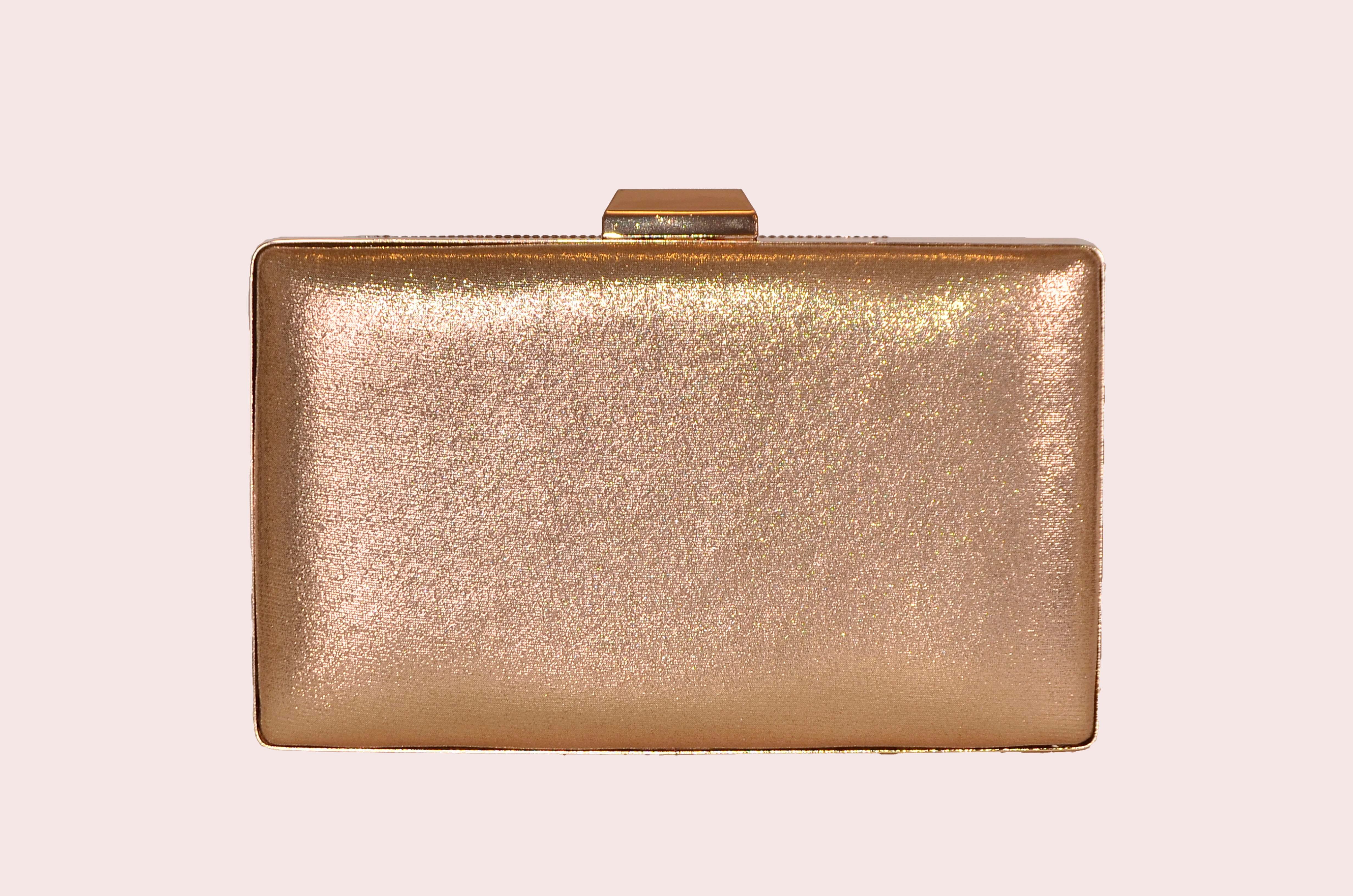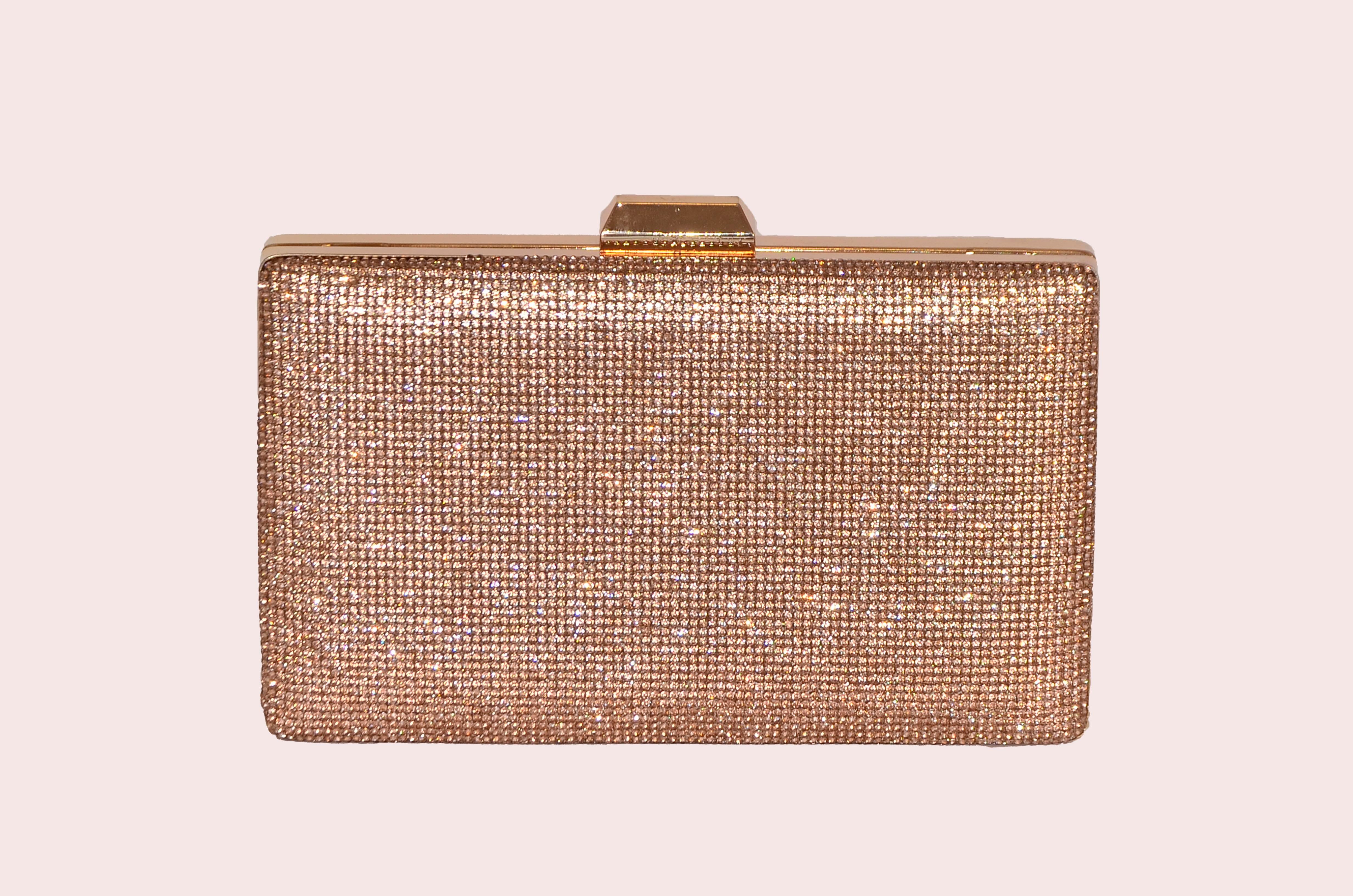 Rose Meş Plaka Taşlı Dikdörtgen Abiye Çanta