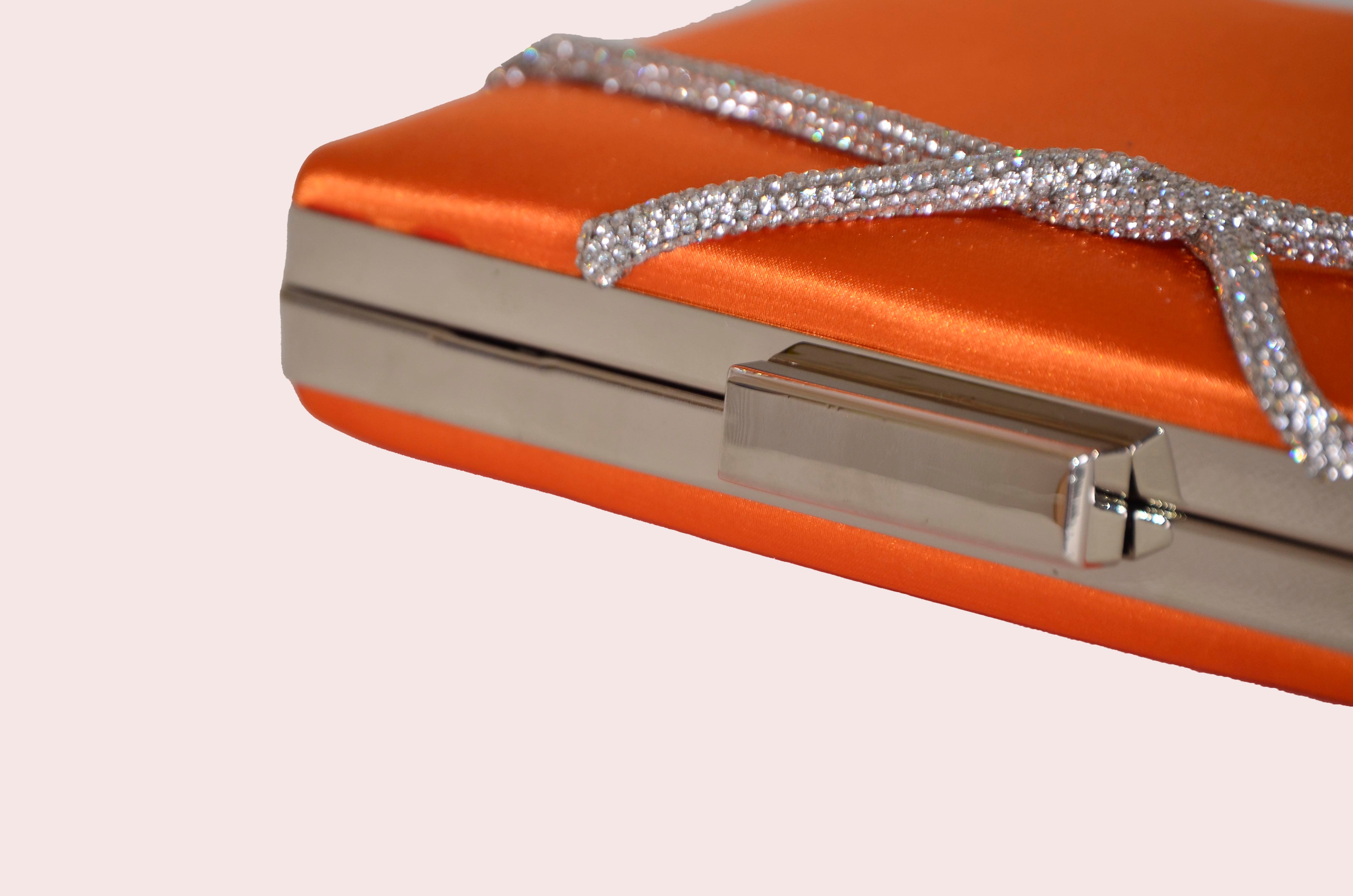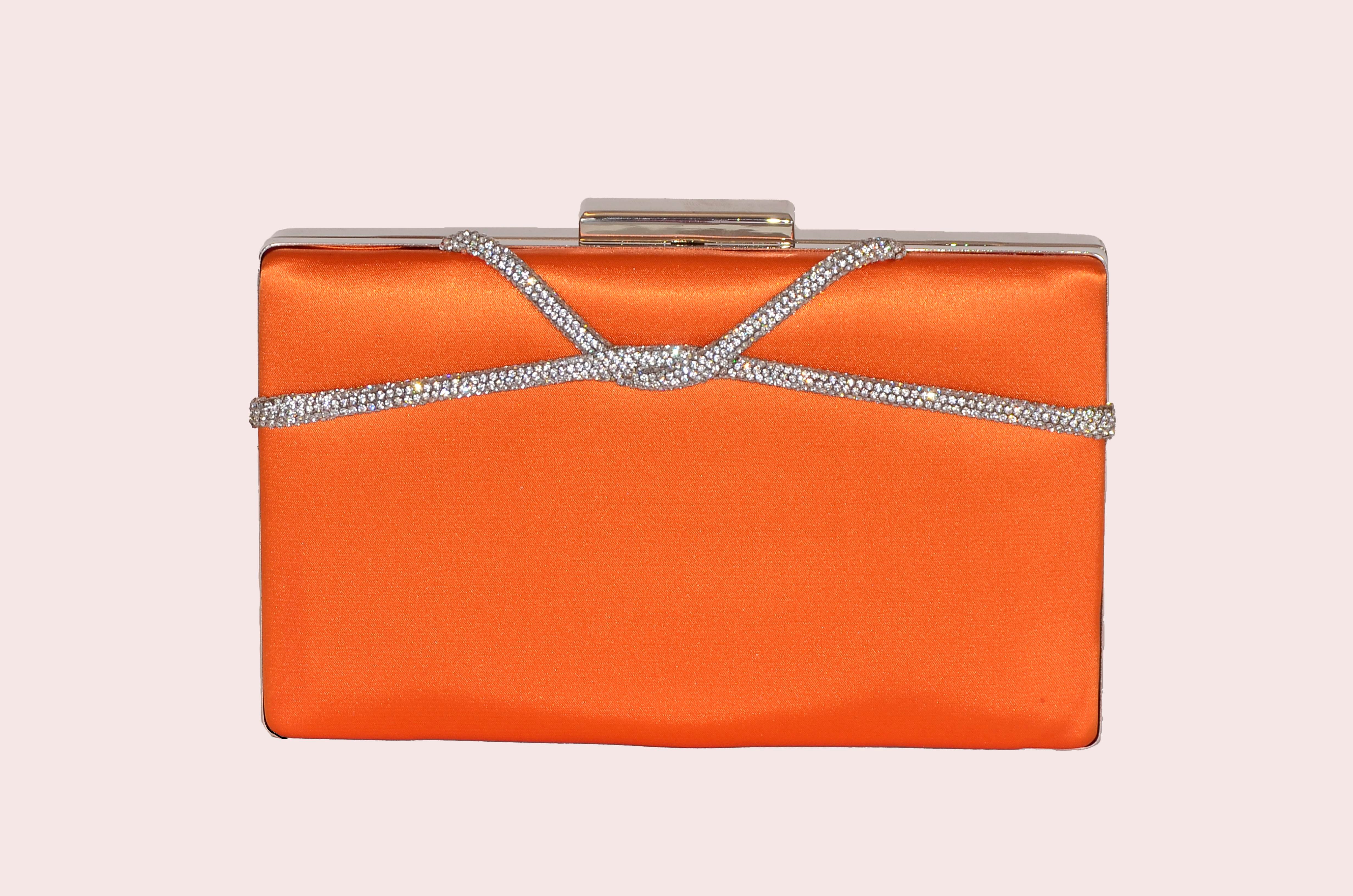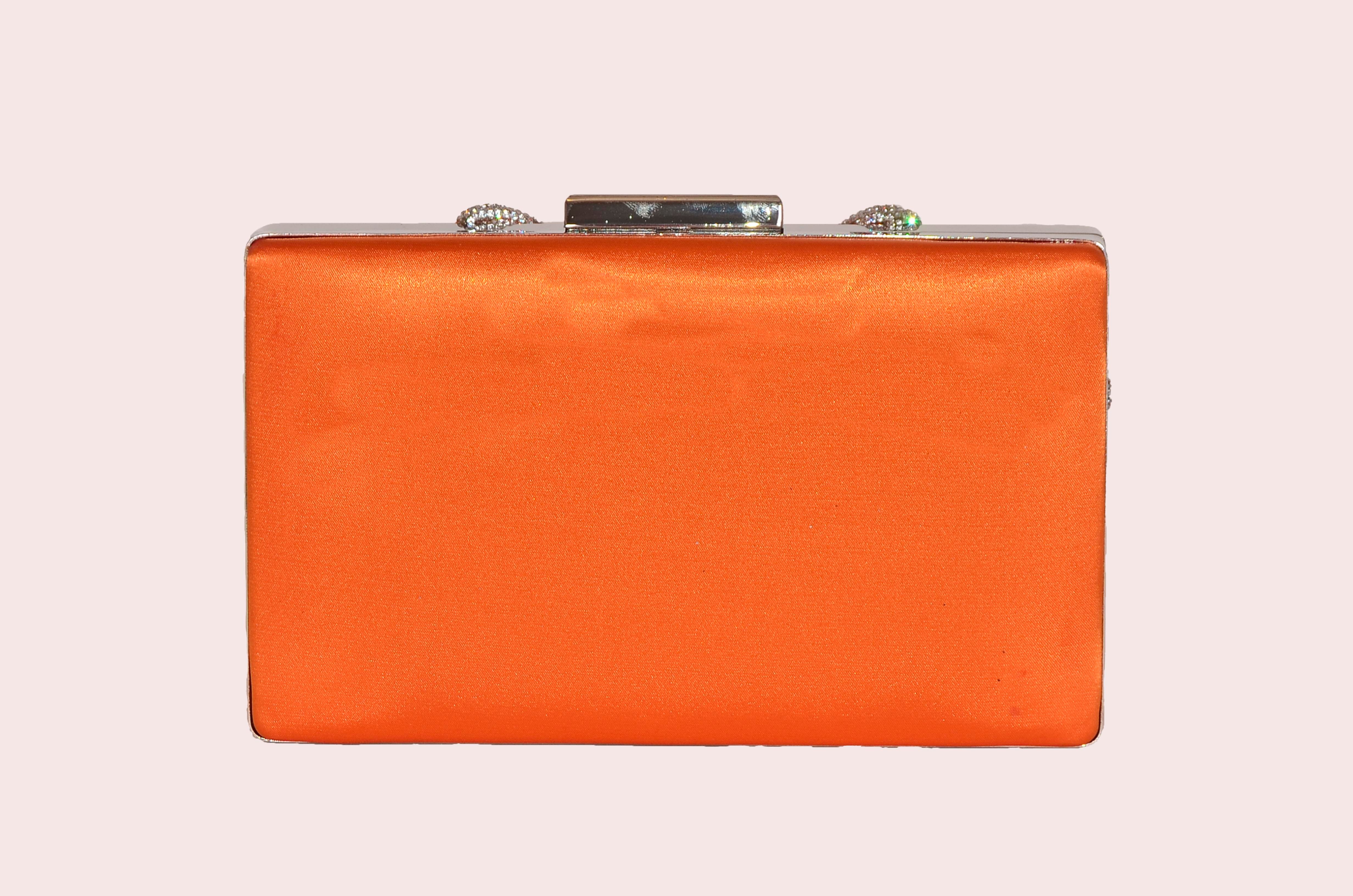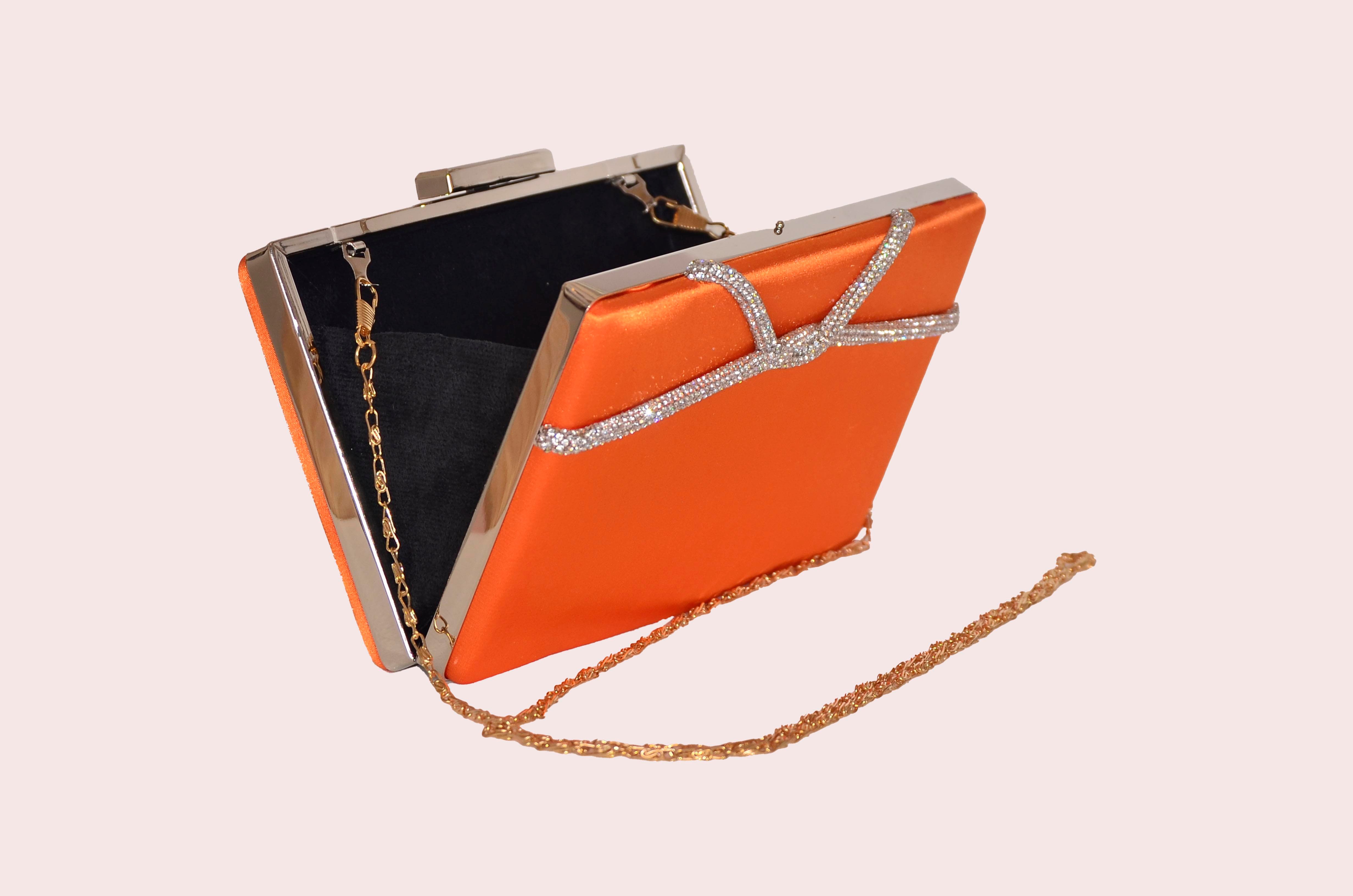 Orange Satin Stone Rectangular Evening Bag